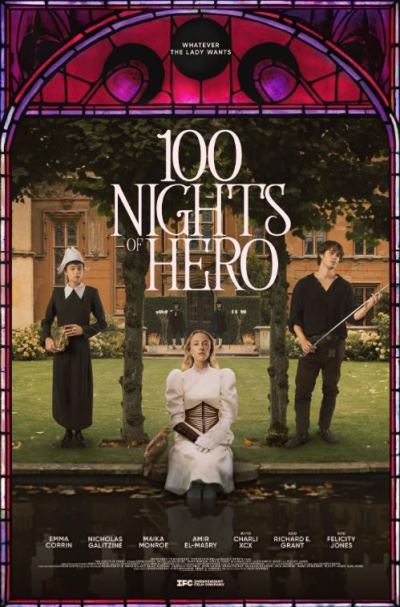 Основанная на книге Изабель Гринберг, “100 ночей героя” - это история, построенная из нескольких историй, но в основном рассказывающая о Герое (Эмма Коррин) и Черри (Майка Монро). Черри - нежная, но преданная натура, в основном одетая в белое, словно для того, чтобы подчеркнуть свою невинность. Несмотря на давление со стороны родственников мужа и религиозного ордена, поклоняющегося птицам, который правит королевством, ее муж Джером (Эми Эль-Масри) избегает ложиться с ней в постель, вынуждая ее взять на себя всю вину за то, что она не смогла зачать ребенка, что, конечно же, она не может оспорить.